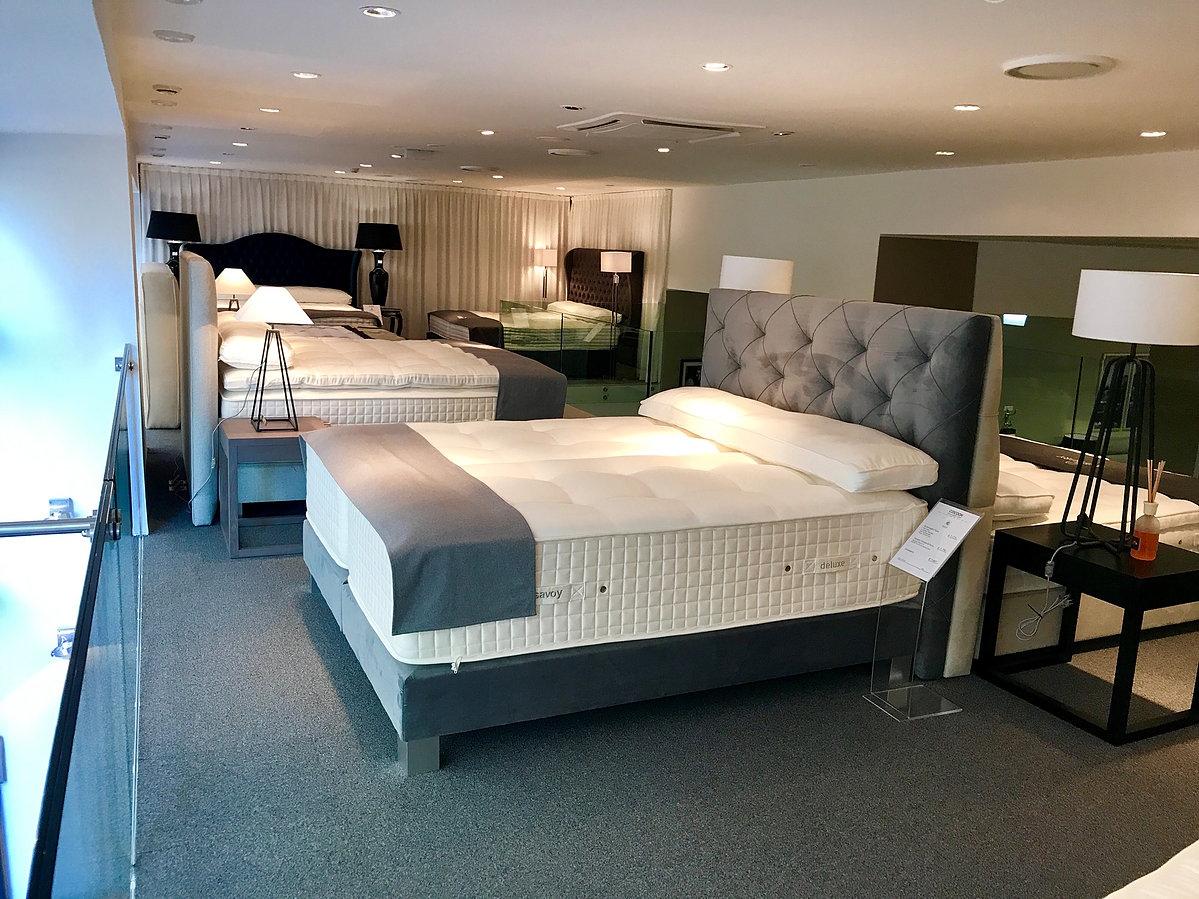 - Nachdem die Matratze ausgewählt wurde, folgt die Auswahl des Boxsprings als unterstützende Basis. Die sorgfältige Anpassung des Federsystems an Ihren Körper, das Bett und die gewünschte Matratze sind für einen hohen Schlafkomfort von großer Bedeutung.