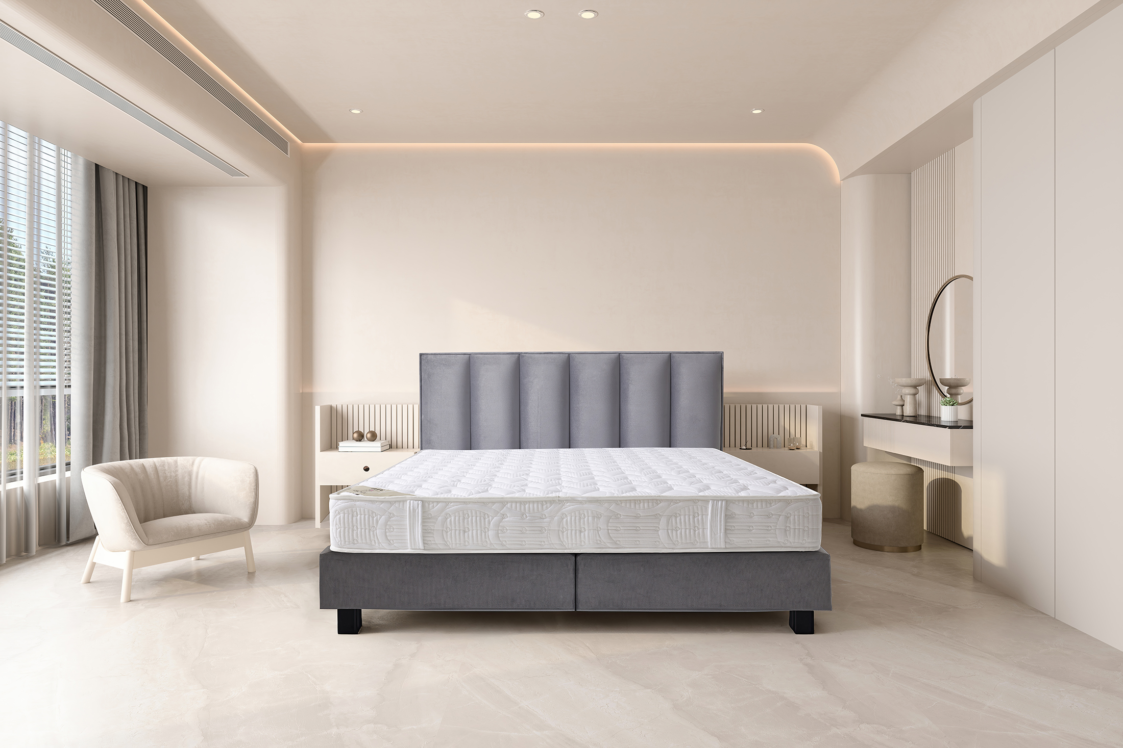 Another highlight of the KING KOIL HOTEL LIBERTY Collection is its versatility, making it particularly valuable for the hospitality industry. The mattresses are easy to flip and can even be used with existing bed frames and slatted bases. The box spring base is equally adaptable and features a Bonell spring core with 260 springs per square meter, providing robust support as a base layer for the mattress.